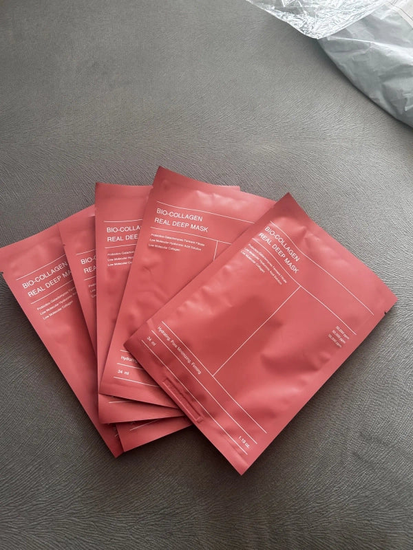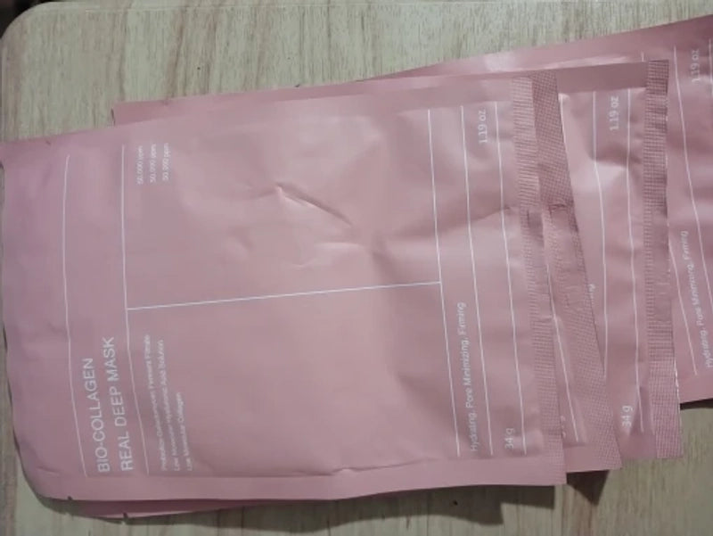 Ouvre délicatement le sachet rose et déplie le Masque Bio Collagène. Positionne-le sur ton visage, en ajustant les ouvertures pour les yeux, le nez et la bouche. Sens cette fraîcheur instantanée envahir ta peau. Lisse le masque pour qu'il adhère parfaitement, permettant à chaque millimètre de ton visage d'absorber ce cocktail hydratant et raffermissant. C'est ton moment cocooning, la promesse d'un éclat futur.